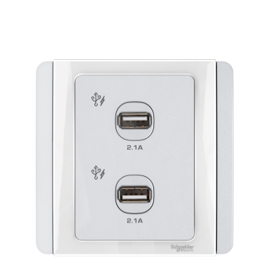Schneider NEO E3032USB_WW_G19 2 x 2A USB Charger on a Wall Plate – White