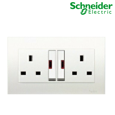 Schneider Vivace KB25LDN_WE Ổ cắm đôi 3 chấu 13A, 2 công tắc 2 cực, đèn báo Màu Trắng