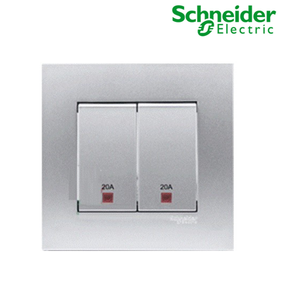 Schneider Vivace KB32D20NE_AS – Công Tắc Đôi 2 Cực 20A Có Đèn Led Màu Bạc