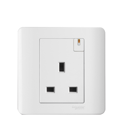 Schneider Zencelo E8415_G19 Ổ cắm đơn 3 chấu dẹt 13A có đèn màu Trắng
