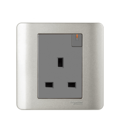 Schneider Zencelo E8415DN_SA_G19 Công tắc đơn 2 cưc 13A màu Xám bạc đèn neon