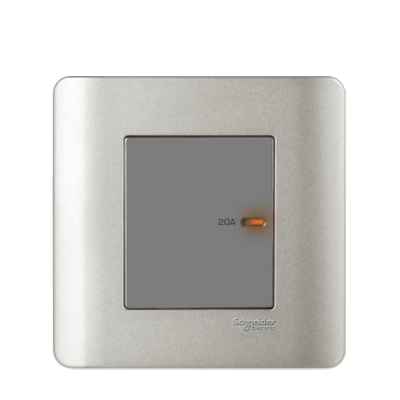 Schneider Zencelo E8431D20_SA_G19 Công Tắc đơn 2 Cực 20A Có Đèn Báo màu Bạc